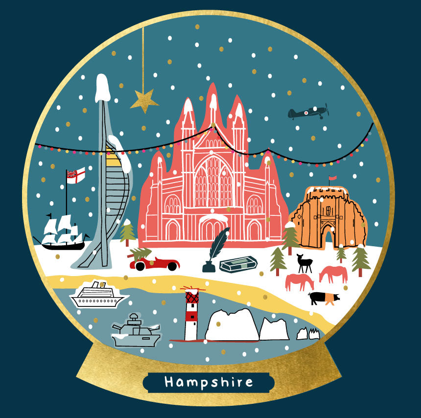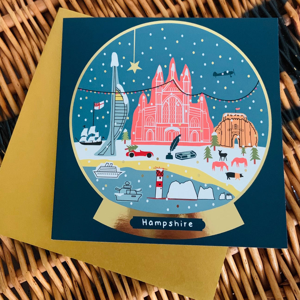 LUXURY GOLD FOILED Hampshire Snow Globe Christmas Card