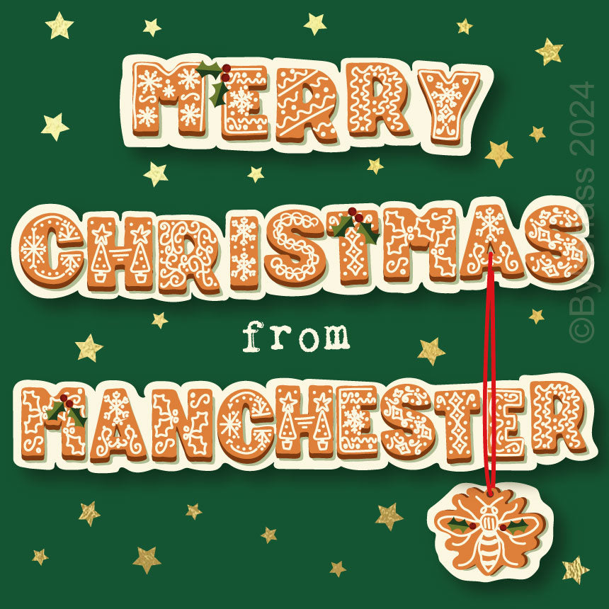 Merry Christmas from Manchester - Gold Foiled Christmas Card --- GBC4