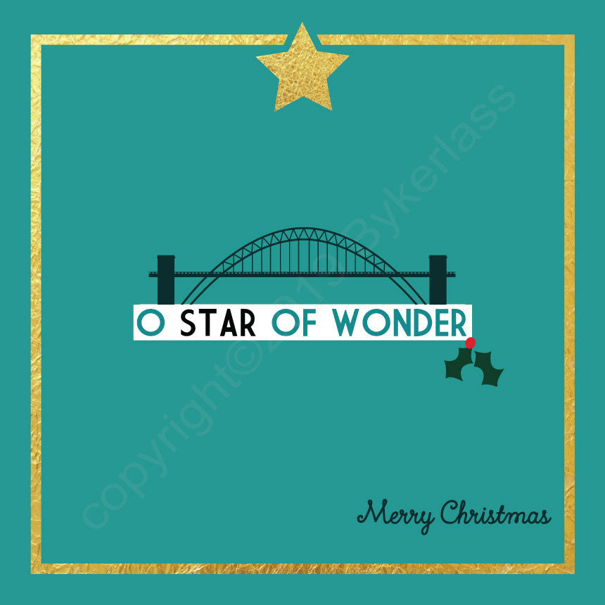 Tyne Bridge O Star of Wonder Turquoise Christmas Card --- FX84