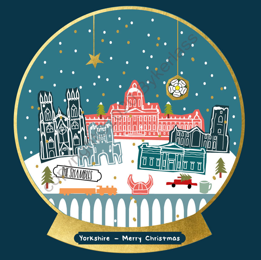 LUXURY GOLD FOILED Yorkshire One Snow Globe Christmas Card