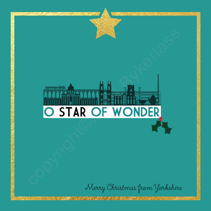 Yorkshire O Star of Wonder Turquoise Christmas Card --- FX87