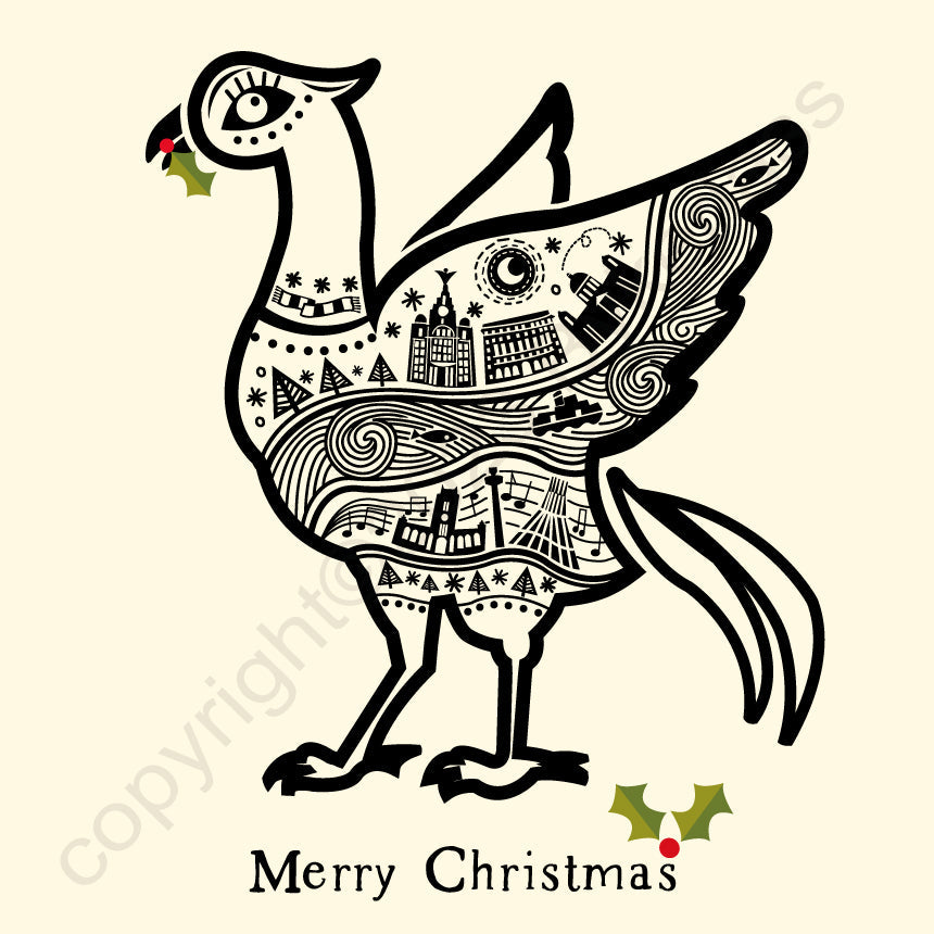 Liver Bird Line Illustration Christmas Card (Cream) --- SX13