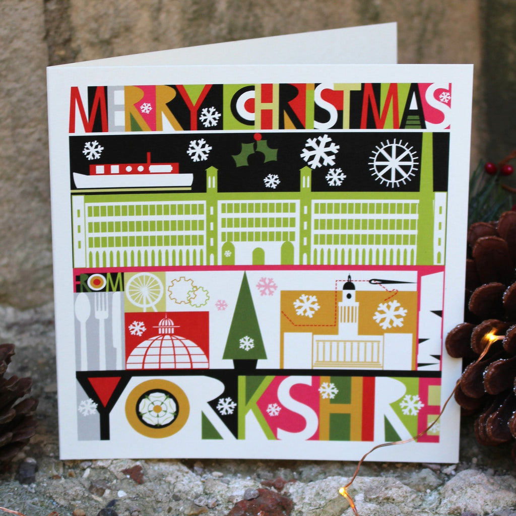 Featuring iconic sights of Yorkshire with a list of all places featured on the back! Say Merry Christmas from Yorkshire with style this year - beautifully designed by a skilled illustrator - quality and style together - REYT GUD!