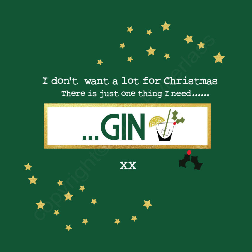 All I Want For Christmas Is Gin Bottle Green Christmas Card --- FX27