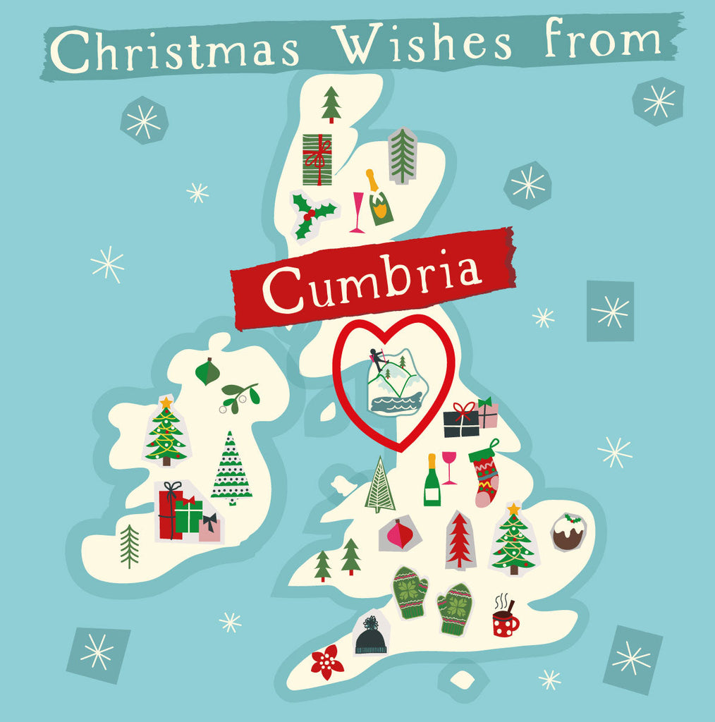 Illustrated UK Map Christmas Card - Cumbrian Card --- XMC19