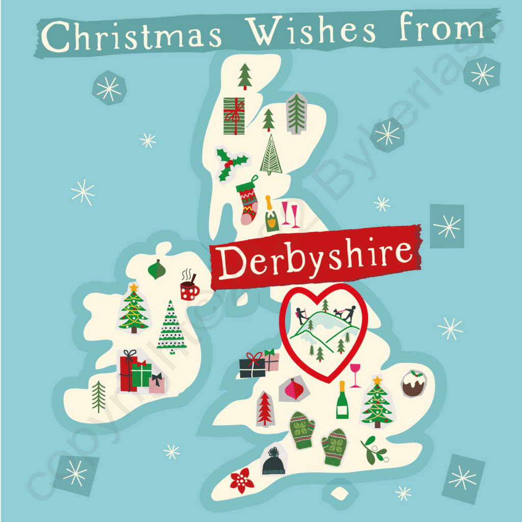 Illustrated UK Map Christmas Card - Derbyshire --- XMC9