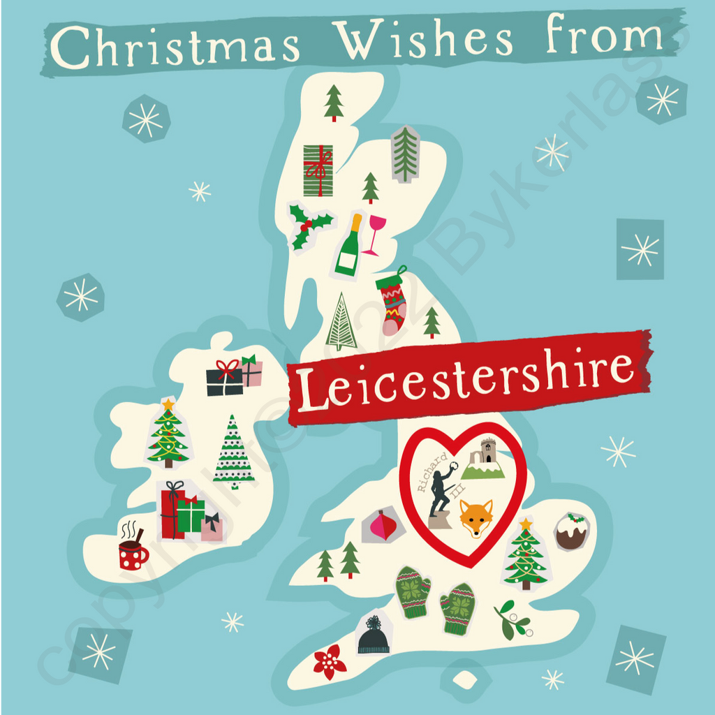 Illustrated UK Map Christmas Card - Leicestershire