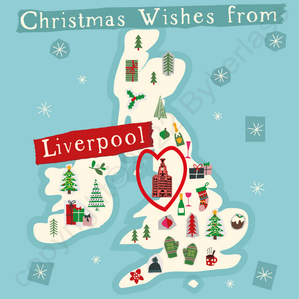 Illustrated UK Map Christmas Card - Liverpool